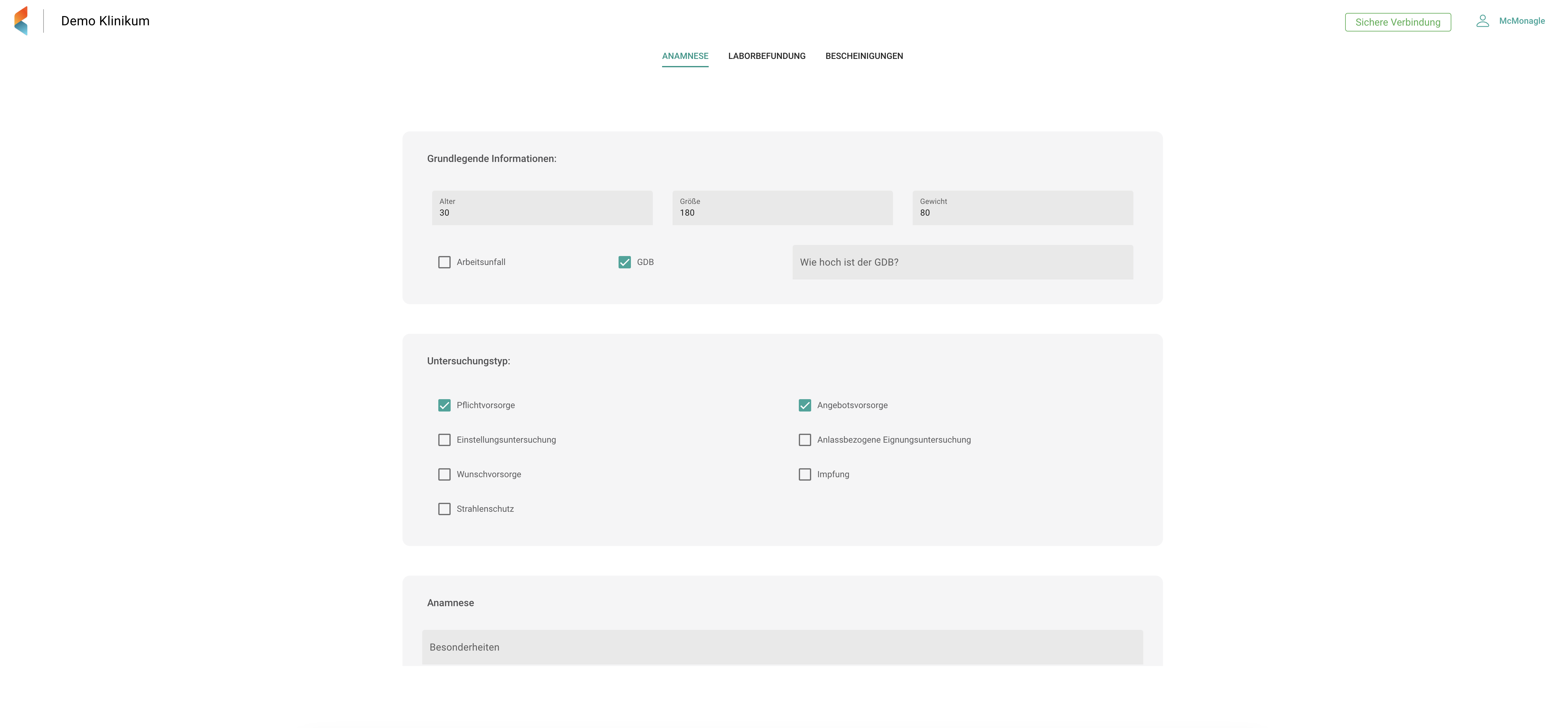 Dama konzentriert sich auf den Betriebsärztlichen Dienst. Angefangen bei der Freigabe und Verwaltung von Terminslots, welche über ein intuitives Portal von Mitarbeitern buchbar sind, über das Erstellen von digitalen Patientenakten, Archivierung von Fremdbefunden, Analyse von Laborwerten, bis zu automatisierten Generierung von Berichten.